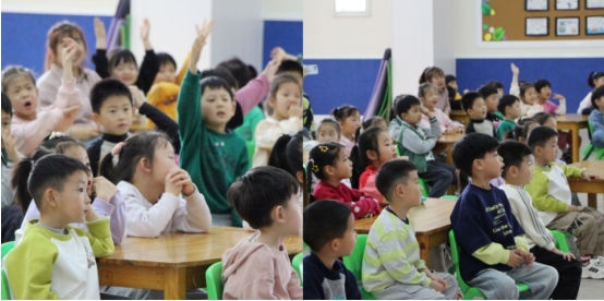 活动伊始,老师以生动活泼的方式,带领小朋友们一起走进绘本《跑跑镇》的奇妙世界。这本书以其独特的创意和幽默的故事情节深受孩子们喜爱,老师通过夸张的表情、丰富的肢体语言和趣味提问,引导孩子们思考:“小猫和小鹰撞在一起会变成什么?”“汽车和轮船相遇又会发生什么?”孩子们纷纷举起小手,踊跃回答,孩子们天马行空的想象力让现场气氛格外热烈,每一个奇思妙想都引来阵阵掌声,课堂充满了欢声笑语。