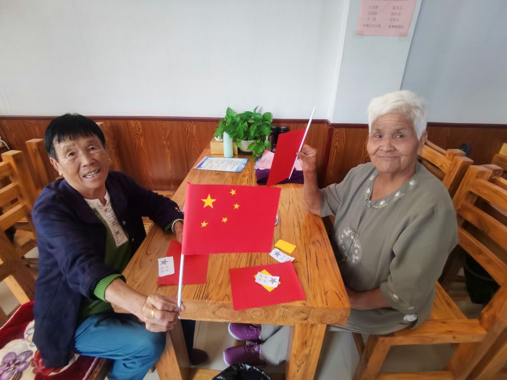 为增强老人活动的参与感,抒发个人的爱国情怀,项目组特此进行了一场手工国旗制作的小活动,每一次落剪,每一次粘黏,都饱含着老人深沉的爱国情怀。