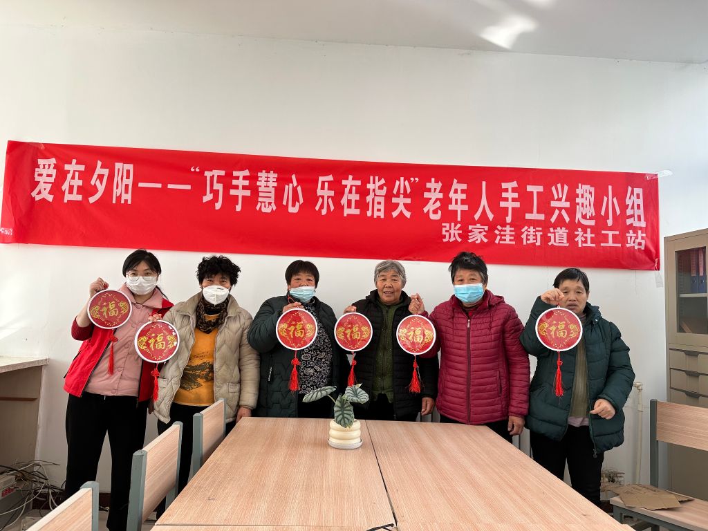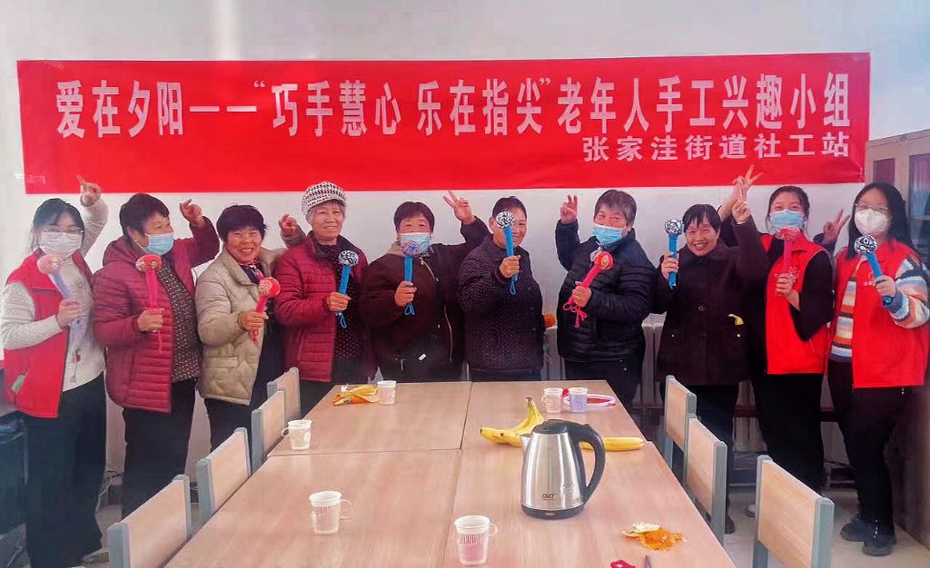 为满足辖区内老年人爱好手工艺术和参与社会生活的需求,搭建一个可以让老年人展示自我、相互交往的平台,12月2日至12月23日,张家洼街道社工站在小洛庄村活动室开展了“爱在夕阳”之“巧手慧心 乐在指间”老年人手工兴趣小组。