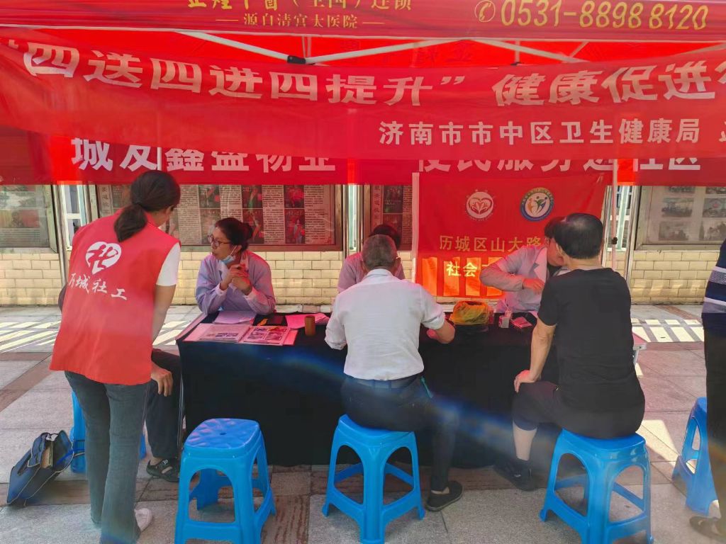 为更好的服务居民,提升居民的健康理念,倡导科学合理健康的生活方式、普及健康知识和自我保健意识,让居民不出小区就能享受到贴心、周到、便利化的医疗保健服务,8月30日上午,山大路街道社工站与城发鑫盛物业、市中区卫生健康局正煌中医联动开展“便民服务进社区”义诊活动。
