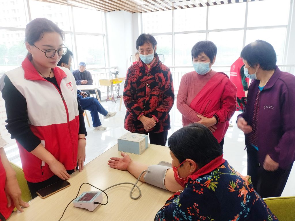 义诊处志愿者耐心地为服务对象测量血压,详细地解答服务对象们的问题并做好健康登记。同时,针对春季常见疾病向服务对象们提供了预防的有效方法,并强调注意防范流感,真正把健康服务送到他们身边。