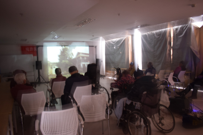 活动伊始,社工去各楼层告知老人今天电影放映内容,老人得知是长征的电影,都兴奋不已,说好久没看这种老电影了。下午两点半,电影准时放映。该影片为纪录片,其中有一个片段讲述了,为了能让一个女红军产下婴儿,将军要求一个团做阻击,事后,有的人不解,为什么为了一个孩子要做这么大的防御,将军严肃的说:“我们不就是为了孩子么”。70年的岁月,早已让“长征”不再是一个简单的动词和名词,它已经成为一种力量,一种精神,一种信仰。影片结束后,老人们并没有立刻离开座位,而是陷入了深深的沉思...