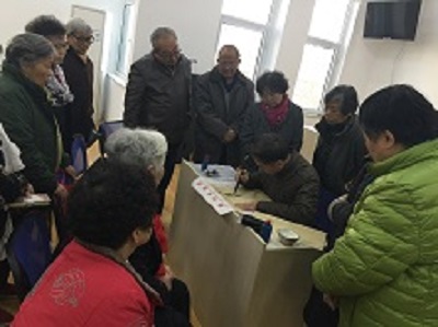 11月9日,盛福花园社区的书法爱好者在居委会参加了“银龄伙伴”社工项目组开展的“翰墨传递邻里情”第五次小组活动。