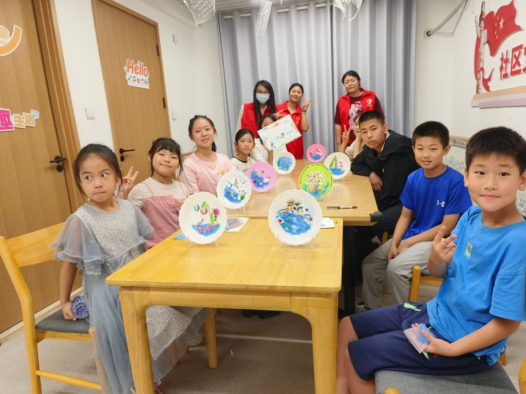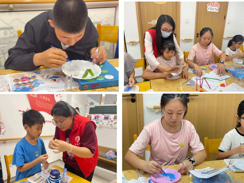 活动开始之前,社工带领组员回忆小组第一节内容,组织组员思考分析,通过第一节活动大家学到了什么,感受到什么。组员纷纷畅聊心中所想,有的表示在小组中感受到了温暖和快乐,有的表示手工活动让自己变得更加耐心了,还有的表示参与小组活动让暑假变得更有意义。孩子们你一言我一语,气氛逐渐活跃,已没有了第一期小组时的陌生感。随后,社工通过“萝卜蹲”、“逛三园”等热场游戏,进一步拉进了相互之间的距离,伴随着一阵阵的欢笑声,小组气氛逐渐“火热”起来。结合本期主题,社工运用自我披露技巧,将自身的旅行经历分享给大家,以此拉近与孩子们的距离,通过正向引导,促进孩子表达自己的旅行经历,运用“分享环节”,锻炼组员的语言表达能力,并在分享中感受与同伴的类似经历,从而进一步促进组员间的凝聚力。最后的贝壳画手工DIY环节是孩子们最期待的,先由社工讲述制作过程中的注意事项,并展示成品,在分发手工材料过程中,个别组员因为想要其他的盘子颜色,与组员产生冲突,社工充当协调者,运用澄清、角色扮演等技巧,促进组员相互理解,处理其冲突,很快在社工的介入下,小组逐渐和谐,并开始专心创作,大家发挥想象力,制作中相互帮助,孩子们尝试着各种色彩搭配,用五彩斑斓的贝壳,将自己心中的“星辰大海”粘贴成一幅美丽的画卷。