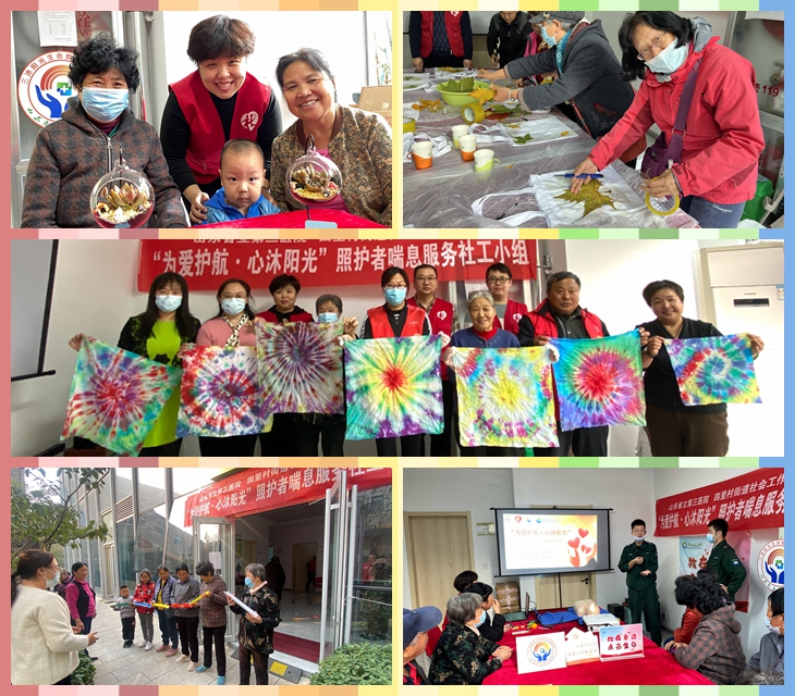 照护者喘息服务是为其创造喘息时间,提供满足需求的专业性喘息服务活动,并且运用社会支持理论解释照护者的社会支持,理论与实践的结合,更有利于帮助照护者缓解压力和建构社会支持网络,满足自我需求和期望,提高生活质量。因此,结合四里村街道照护者的特点,四里村街道社工站积极链接省立三院医务社工资源,以及医护志愿者、社区志愿者,通过医疗照护专业指导、社工提供心理支持、艺术减压,并辅以志愿者帮扶的方式,开展小组活动,使照护者找回自己生活的颜色,得到真正的放松、快乐,从心底享受沐浴在阳光中的温暖感觉。