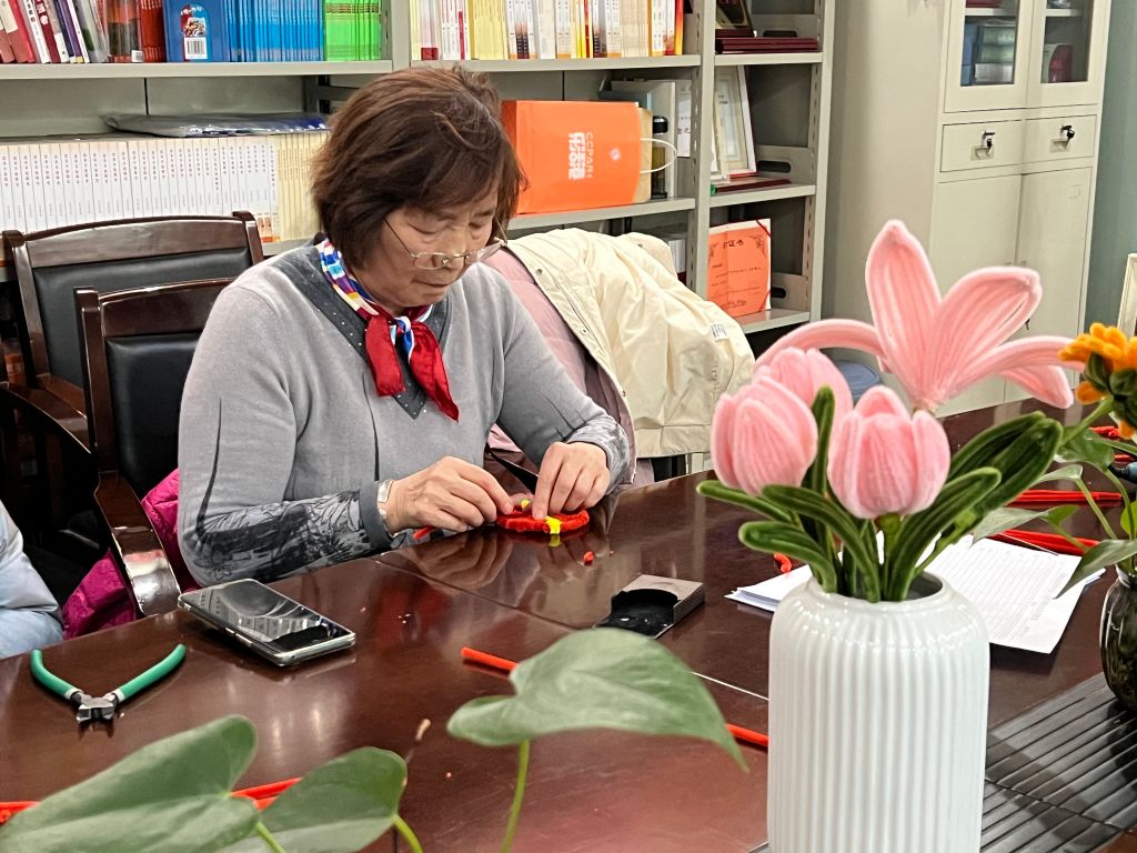 活动当天,阳光明媚,社区活动室内洋溢着温馨的氛围。组员们准时到达,脸上洋溢着期待与喜悦。社工们把今天的用具分发给每个组员,社区志愿者徐老师为大家讲解了“福”字的制作,福字的“礻”部分可以用弯曲的扭扭棒组成,而“口”部分则可以用直线段的扭扭棒制作......,徐老师细心的讲解着每一个步骤,当组员遇到问题时,其余组员也能主动给予帮助,组员之间相处非常融洽!