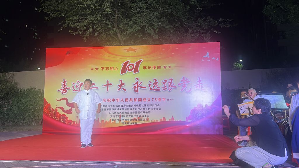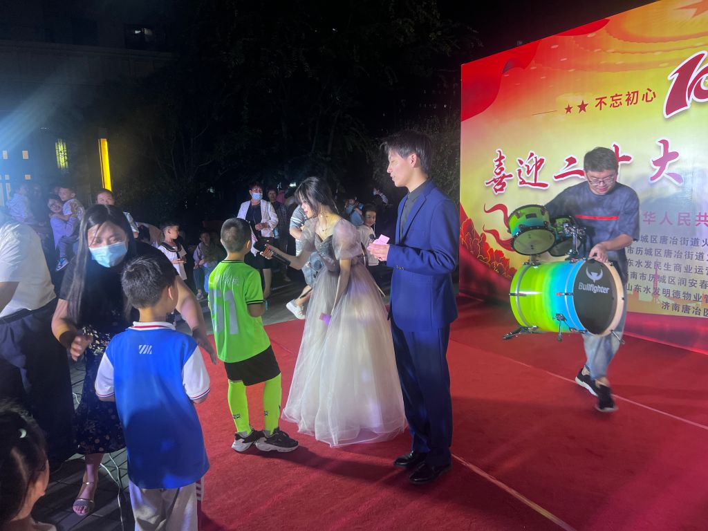 为庆祝中国共产党成立101周年,喜迎党的二十大胜利召开,深入开展“乐享生活”文化惠民活动,展示居民群众良好精神风貌,进一步推进社区建设,增强社区社会组织共建服务,9月27日,唐冶街道社工站协助火炬悦茗社区举办“喜迎二十大 永远跟党走”文艺晚会。