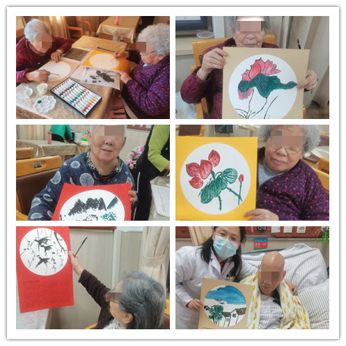 功夫不负有心人,老人们一下午认认真真地绘制,让一幅幅精美的日历画逐渐展现出来。老人绘画时,医务社工和护士们也没闲着,帮老人调色,涮笔,还抽空各自画了一副,送给不能来参加社工活动的高龄老人。当社工把日历送到老人身边,老人非常开心,连声说谢谢。