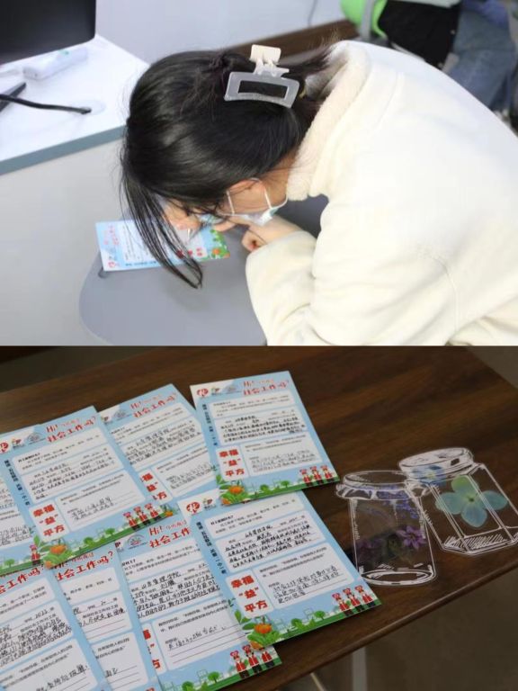 “一老一小”是社工服务的重要人群,也是社会的重点关注。兴福站聚焦“一老一小”的服务需要及赋能需要,充分发挥社会工作的专业优势,积极引导各类志愿力量参与到‘一老一小’服务中,首先便联合高校师生采用图解社会工作、图说社会工作、图讲社工服务的形式为辖区志愿服务队伍进行专项科普。“你听说过社会工作吗?”“社工能做什么?”“什么是社会工作?”当理论与实践开始相互碰撞,一张张赋能卡片在经过高校师生撰写,传递回到志愿服务队手中后,我眼中的社会工作和我身边的社工服务便更加有了立体感。