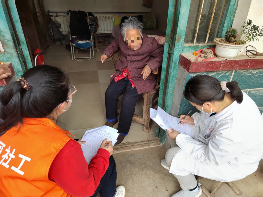 为充分发挥家庭养老的基础性作用,增强失能老人家庭照护能力,近日,贾庄镇社工站联合镇卫生院面向辖区内困境老人开展“入户评估暖人心 ,社工到家解难题”为主题的喘息服务活动。通过社工和医护人员对辖区内失能高龄老人的入户探望,了解到潘家村的潘爷爷脑梗瘫痪在床多年,由其哥哥潘某某照顾,社工小程和医护人员首先对其身体进行评估,帮助其办理重度护理及生活补贴。