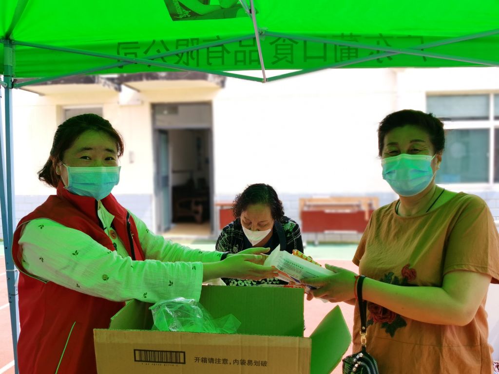 5月27日,天桥东街街道社工站给社区志愿者送上了口罩、矿泉水、洗衣皂等物资,就他们为疫情防控所付出的辛勤和努力表达衷心的感谢,并提醒他们在志愿服务的同时做好个人防护。