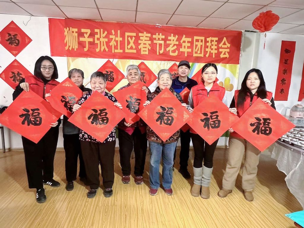 社工站在狮子张社区的活动室里,布置得温馨而雅致。桌上摆放着笔墨纸砚,书法爱好者们正准备挥毫书写新春的祝福。他们的笔下,一个个“福”字跃然纸上,带着新春的喜庆与祝愿。这些“福”字不仅是对新年的美好祝愿,更是社工站对社区老人们的深切关怀。老人们陆续来到活动现场,他们或领取“福”字,或欣赏书法作品,每个人的脸上都洋溢着幸福的笑容。