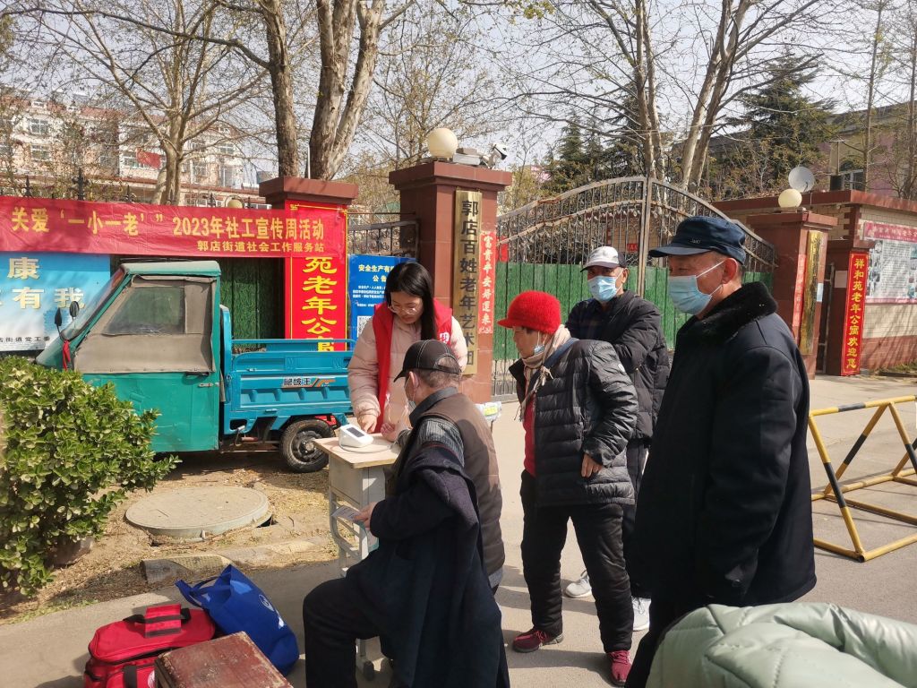 郭店街道社工站结合“1+1乐居服务包”,在郭店大集上向来往的居民朋友们提供免费测量血压服务,切实做好“一小一老”中老年服务群体健康检测。活动中,社工利用宣传手册向排队检测的居民朋友展示社工站的日常、志愿服务活动以及活动成果,通过访谈、倾听与观察等方法和大家进行互动,介绍郭店社工站的服务领域以及服务开展情况,帮助社区居民树立社工概念,了解“大美郭店”品牌。同时把老年人的需求纳入“1+1乐居服务包”,通过多样性的服务,满足一小和一老两类群体需求,在服务过程中监测服务对象的身体、心理状况,从而不断完善“1+1乐居服务”体系。