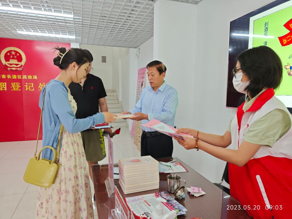 520,我爱你!5月20日被称为网络情人节,在这个特殊的日子也掀起了“登记狂潮”。为了更好的倡导“移风易俗,弘扬文明”新风尚,扩大长清社工的社会知晓度与影响力,长清区文明办、长清区民政局、长清区新时代文明实践中心、长清区社工总站联合开展“婚事新办,社工与您相伴”主题宣传活动。