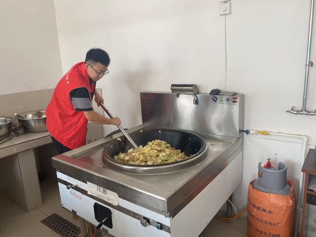 一大早,社工一行人就来到幸福院,同村里的工作人员、志愿者一起采买食材、调料,一起切肉、摘菜、刷锅。中午11点准时开火,由驻站社工掌勺,热油、煸肉、下调料......30分钟的等待,一锅热气腾腾、香味十足的粉条白菜豆腐汤已做好,由社工一碗碗端到老人面前。