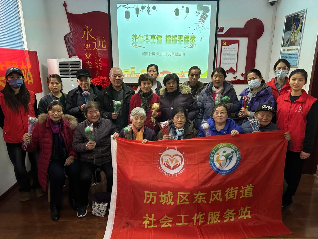 为丰富辖区老人晚年生活,加强邻里沟通,满足辖区老年人文化和娱乐需求,体验动手制作的乐趣。1月9日,东风街道社工站联合新园社区开展“艾在身边,锤出健康”老年人制作养生锤手工活动。