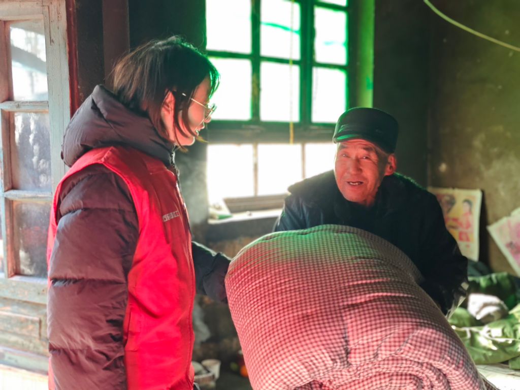 爱心棉被,温暖过冬。社工提前与各村居联系,全面摸排,详细了解他们的生活状况和存在的实际困难,最后确定人员名单。之后社工联合志愿者一起把棉被送到老人手上。老人们收到崭新的棉被,连忙向社工和志愿者道谢,其中有位老人讲“这两天很冷,这是我收到的最暖心的关怀了!”此次社工入户6户,共计送出棉被40床。