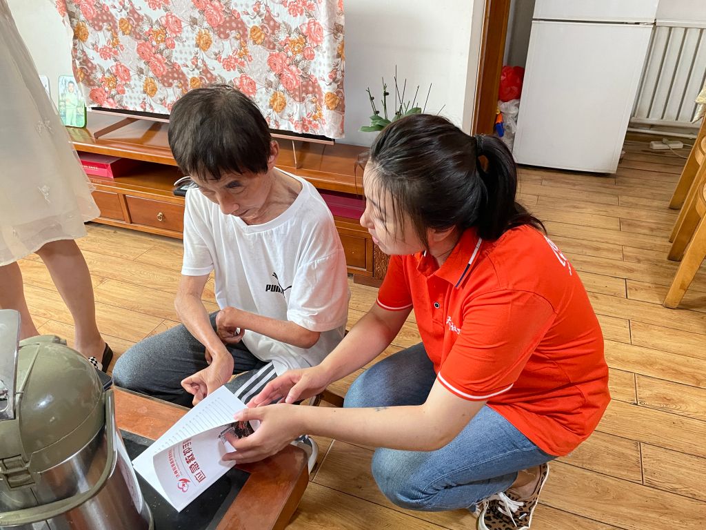 社工冒着大雨走访了其中两户残疾人家庭,详细询问残疾人及其家属的基本生活情况和就业经济情况,以及是否有陪同就医、协助外出等方面的需求。社工与他们交流、谈心,希望帮助残疾人和家属调整心理状态,用阳光积极的态度面对生活中的困难。社工为他们解读了扶残助残的优惠政策,告知如果有需要可以联系社区申请康复器具,也可以随时联络社工站上门帮助。临走时残疾人朋友都很感动,“有你们的关心俺就不能垮,说什么也得好好生活……”