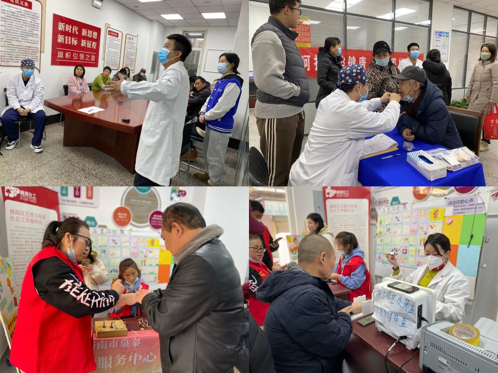 为进一步满足辖区老年人健康保障需求,近期,五里沟街道社工站联合公祥街社区社工室,链接济南市铁路中心医院、赵树堂中医院、济南华侨医院、济南胃康医院、认知障碍普查(齐鲁医院)、九二零口腔医院等多家医疗资源开展健康义诊活动。