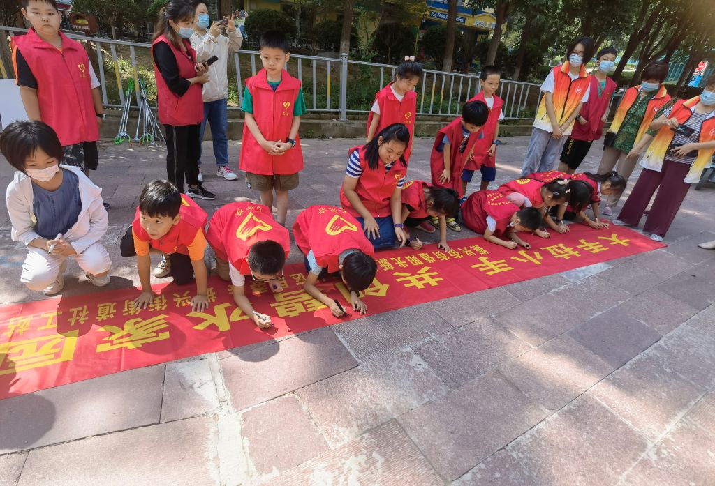 暑期接近尾声,振兴街街道社工站联合阳光新城第三社区居委会与碧水家园守护队开展了“大手拉小手,共创碧水家园”活动。碧水家园守护队是一支专注于河道清理、整治的社区社会组织。本次活动中,社工带领青少年志愿者一起参与到碧水家园守护队的河道两岸卫生清理工作中,切身感受河道环境的重要性。同时,在社工的号召下,青少年志愿者与碧水家园守护队的社区社会组织成员在横幅上一起签下自己的名字,为河道卫生改善、为社区环境美化贡献自己的力量。最后,青少年志愿者在宣传板上写上了自己的寄语,表达了自己对环境保护的热情。此次活动中,社工站整合社区资源,在代际融合中,充分发挥志愿者力量,为社区社会组织注入活力,为其进一步发展提供动力。