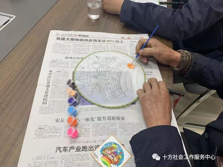 第三次小组活动主题“五彩世界有你有我”。社工介绍绘画工具的使用方法,残障人士认真地听着,并且时不时与社工进行沟通和互动,现场氛围非常活跃。在绘画环节,服务对象都大胆涂色绘画,借助色彩鲜艳的画作来表达生活的乐趣,一些手部不方便的残障人士,在社工和工作人员的协助下也描绘出流畅的线条并且涂上自己喜欢的色彩。