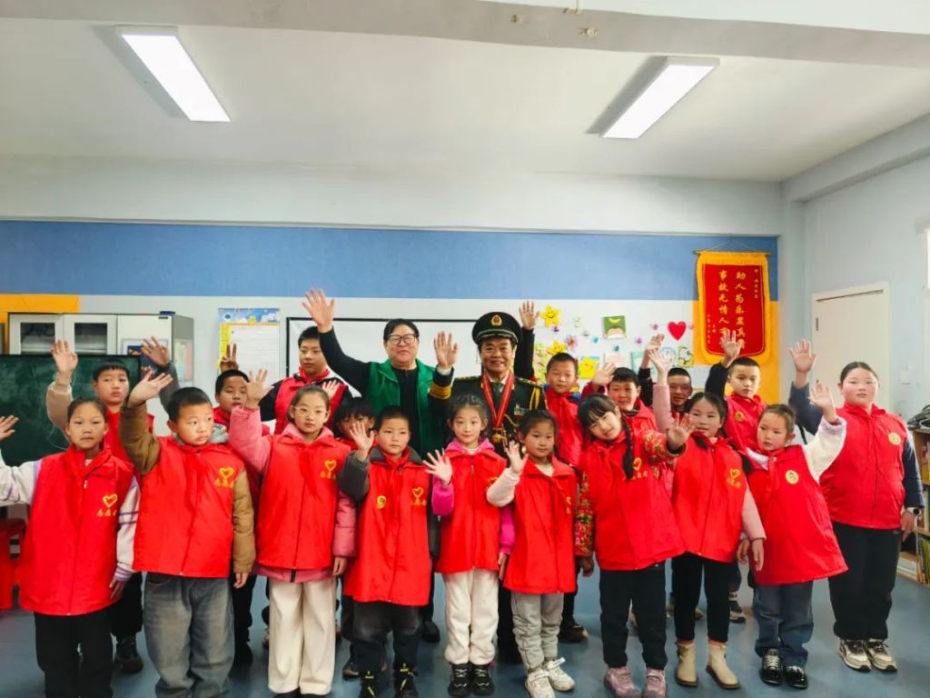 当来到庄严的爱国宣誓环节时,刘爷爷像一棵挺拔的青松,稳稳地站在队伍前方。李爷爷带着孩子们,高高地举起手中鲜艳的国旗,齐声宣誓。“热爱祖国,好好学习,天天向上,为实现中华民族伟大复兴而奋斗!”孩子们的声音清脆而坚定,在活动室内久久回荡。那声音里,有对祖国母亲深深的爱,更有对像刘爷爷这样的解放军前辈们的无限敬仰。他们的眼神坚定而明亮,仿佛在向世界宣告,他们定会接过先辈们手中的接力棒,勇敢前行。