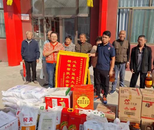 仪式开始,桑梓店街道社会事务科分管领导张克敏和铁匠村副书记怀宝山分别对到来的区领导、爱心人士及受捐代表表示热烈的欢迎与感谢,并向各位领导介绍了辖区困境人群和高龄老人的基本情况。随后,于晓东局长和爱心捐赠单位为受捐村民代表送上米、面和油等慰问品,活动的成功实施离不开社会爱心人士的大力支持,在此特别感谢济南历下慈善总会和济南市历下区砺兵退役军人应急服务中心的物资捐助。仪式上,天桥区民政局四级调研员梁亮和桑梓店街道社会事务科分管领导张克敏为爱心单位代表颁发锦旗。