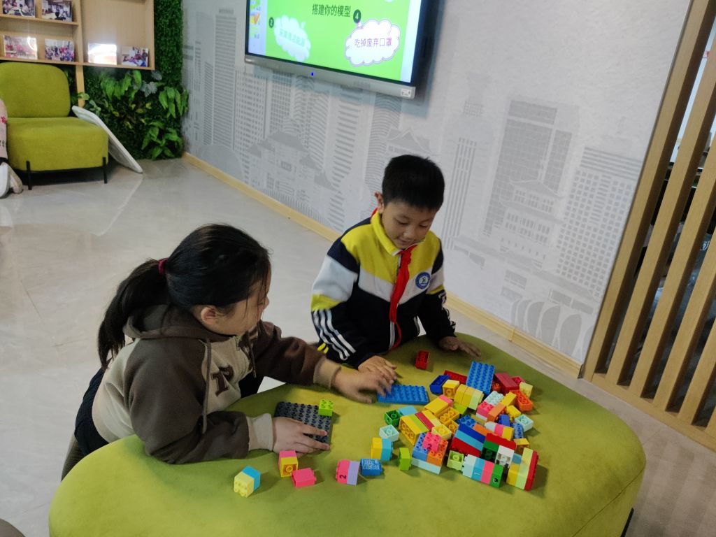 儿童运用乐高积木拼搭“记忆中的乡村场景”