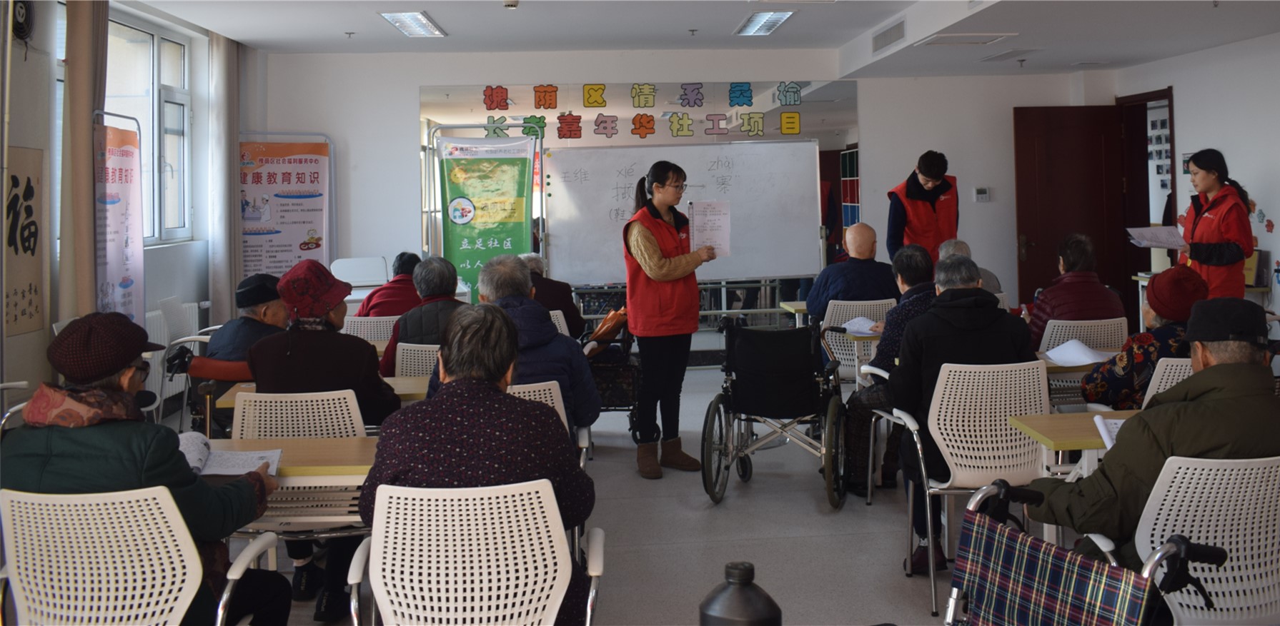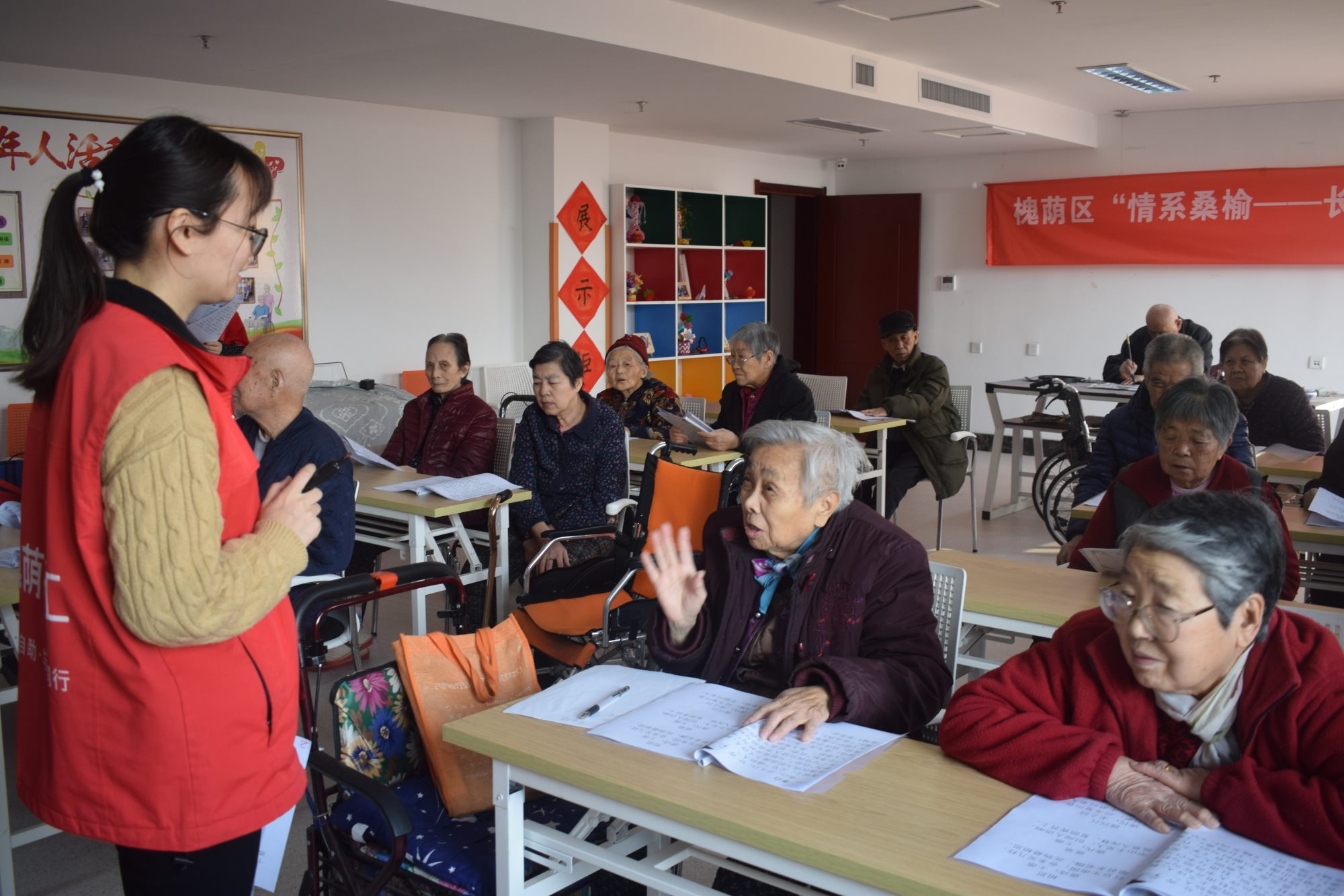 中国是一个有着上下五千年历史的文明古国,上至先秦,下至当代,江山代有才人出,诗词歌赋,灿若星河,是我国的国粹。无论对于老人还是小孩,学习诗词都是大有裨益的。 一是能追求高尚情趣,提高道德修养; 二是能有效地帮助老年人保持进取精神;三是能成为最好的养生之道,人退休,脑不能退休。在此理念的指导下,结合福利中心住养老人的文化程度,悦银龄养老社工项目组在三楼老年大学开展了“乐学时光”诗词学习系列活动,为住养老人带来一场古诗词魅力体验课。