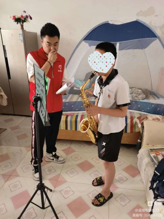 在对困境儿童走访慰问过程中,有个困难儿童在课余时间学习萨克斯,并演奏了《小城故事》《歌声与微笑》。社工与他们亲切交谈,耐心询问了他们的生活学习情况及家庭遇到的困难。社工叮嘱他们要照顾好自己的生活,最后为他们送上了礼物。