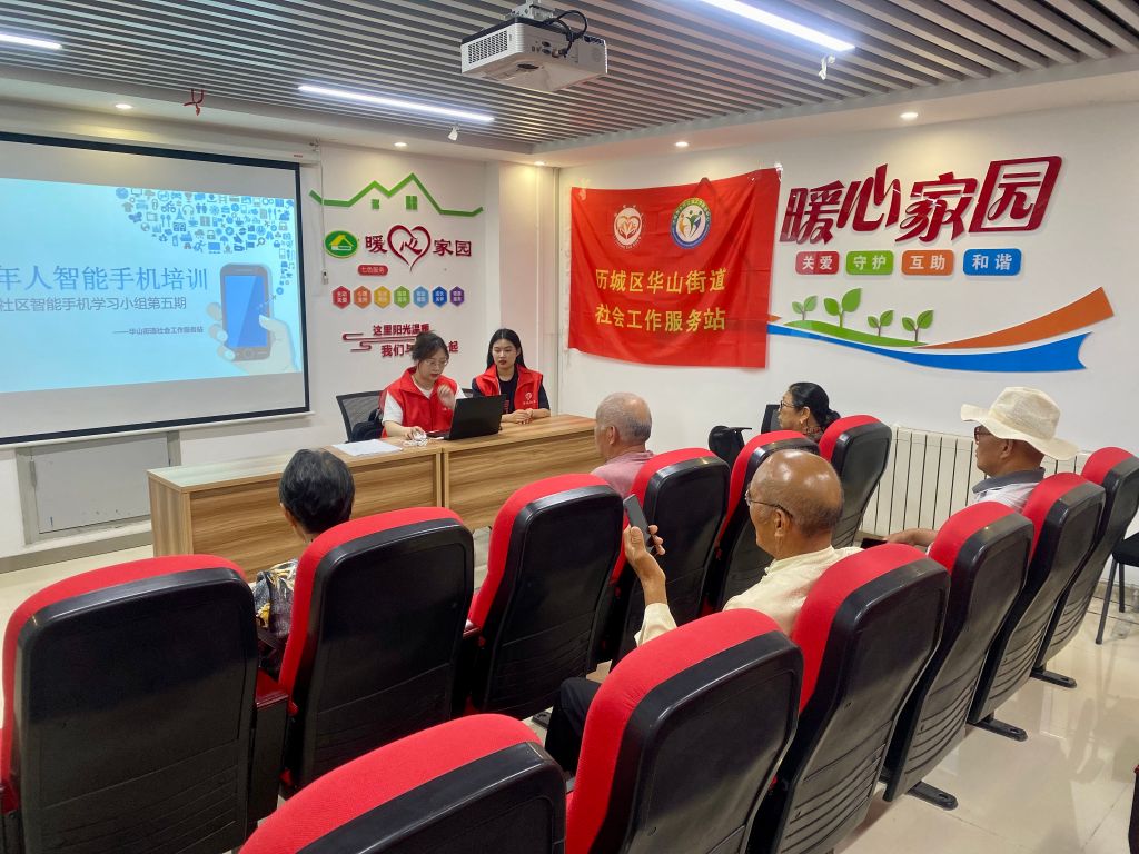 我国老年人口占比越来越高,老龄化趋势日益加剧,在前期调研中,社工了解到目前老年人的健康问题、养老问题等备受关注,老年人的智能设备使用需求则较少被关注。为此,7月4日,华山街道社工站开展“玩转智能手机 悦享美好夕阳”——第五期老年人智能手机培训班活动。