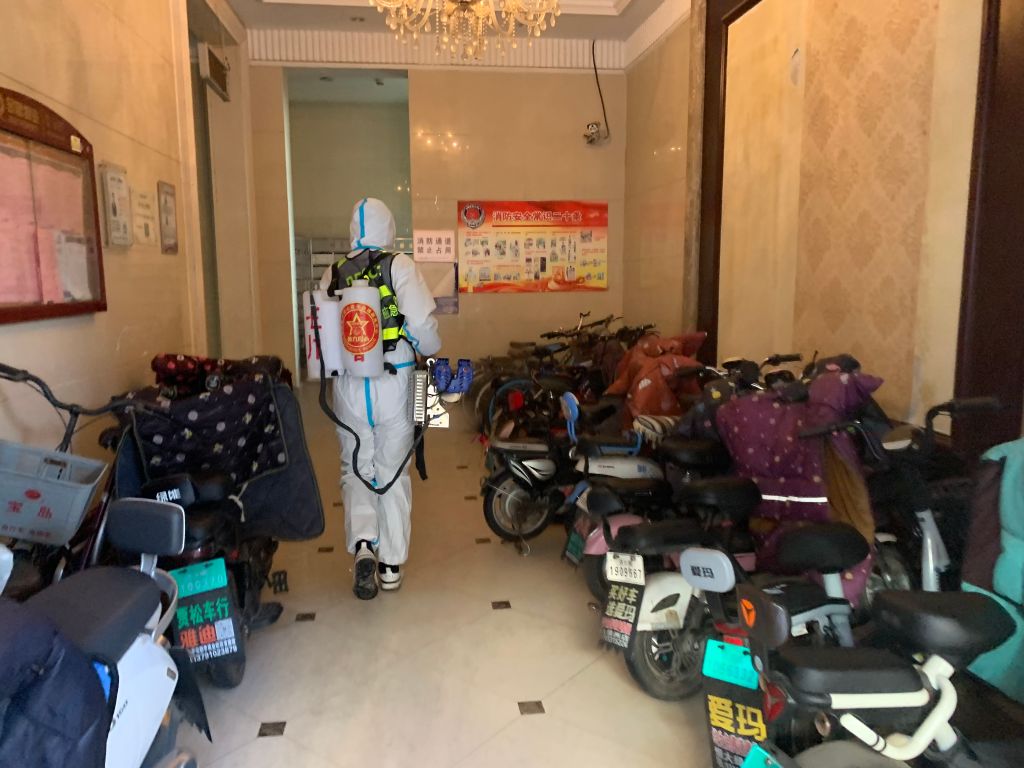 消杀行动中,文昌社工站社工带领救援队队员们深入居民楼、电梯间、核酸检测点、社区公园、停车场、沿街商铺等进行了全覆盖无死角地消杀工作。队员们身穿队服、防护服、佩戴口罩携背着40多斤重的防疫消杀溶液和大功率的弥雾机,共计消杀楼宇11栋,受益人数达2664户。