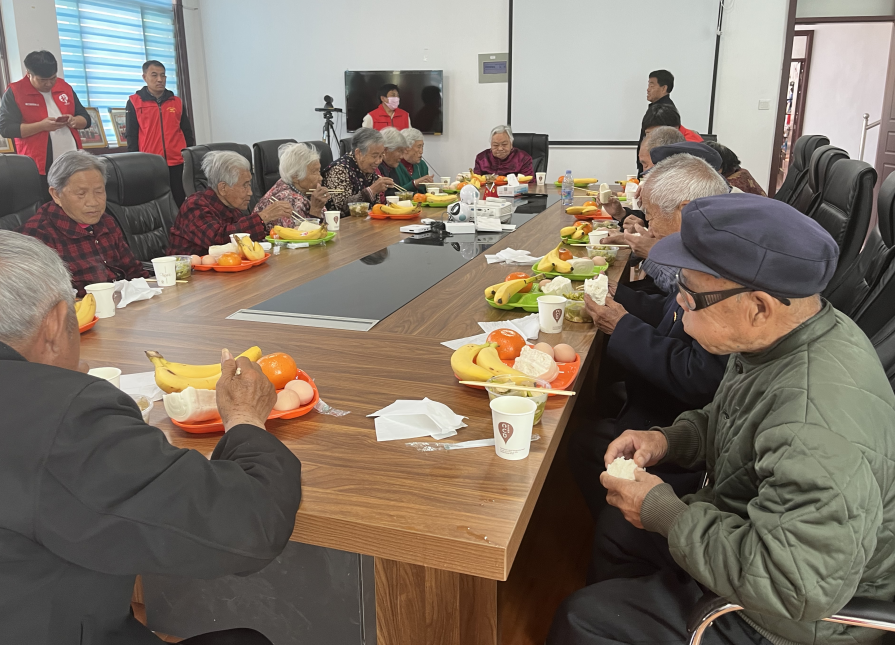 当天一早,白云湖街道社工和生命树的志愿者驱车来的章历村村委会,在老人等待吃饭的时间陪老人聊家常,让老人感受到社区大家庭带来的温暖。老人们在社工和志愿者的陪同下秩序井然地就餐,荤素菜品搭配着橘子、香蕉等水果让老人们胃口大开,老人们一边吃着饭,一边聊着家长里短,增加了邻里感情,拉近了彼此之间的距离。