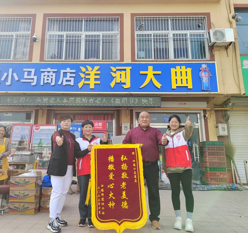 在重阳节当天,社工站精心策划组织免费为辖区100名70周岁以上空巢和独居老人免费发放多功能单人电热锅。活动现场,社工和爱心商户代表向老人们介绍了电热锅的功能和使用方法,送上节日的问候与祝福。70岁的王奶奶说:“太谢谢你们这些穿红马甲的小姑娘了,有了这个小电热锅以后我自己吃多少做多少太省心了”。活动的最后,社工站为小马商店送上锦旗,小小的一面锦旗是对小马商店为辖区老人作出贡献的真诚感谢,感谢他们献爱心、送温暖的暖心之举。
