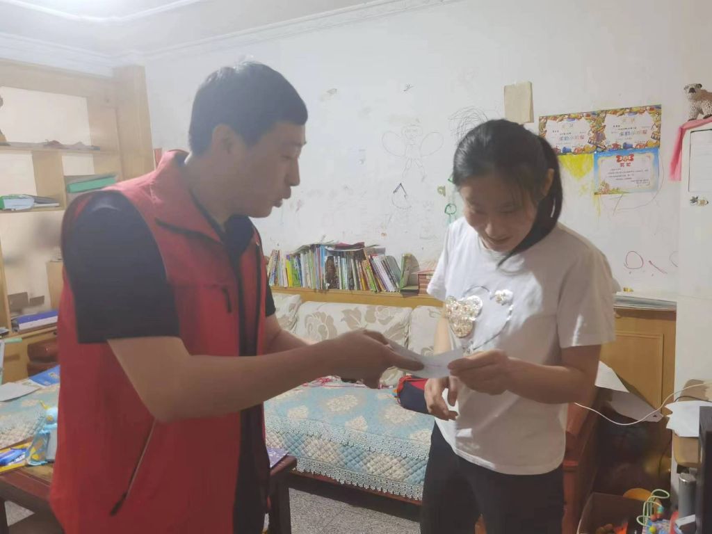 在这次活动中,社工走访辖区困境儿童家庭,详细了解孩子的身体健康、生活、学习情况和实际需求,并向每名孩子发放了爱心读物,鼓励他们要努力学习,以优异的成绩回报社会。走访慰问的同时,社工通过宣传手册向困境儿童家庭讲解了《护佑健康》困境儿童大病保障福利政策,并就家属关心的《残疾人子女教育资助》进行了详细解答。详细说明了政策的面向对象、申请流程的各个环节及时间等方面的内容,使得困境儿童受助家庭对政策有了一定了解,促进了困境儿童政策保障工作的宣传与落实。