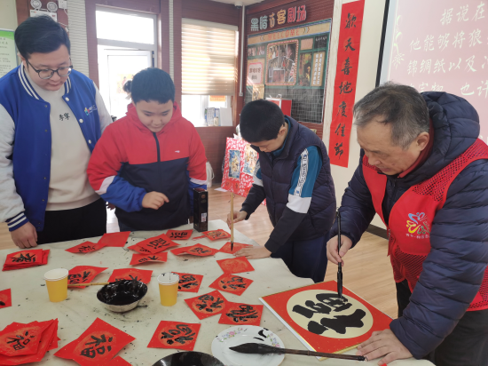 老少携手写福字,“志愿红”添彩新年红 ——槐荫区青年公园街道社工站开展青少年送福志愿服务活动