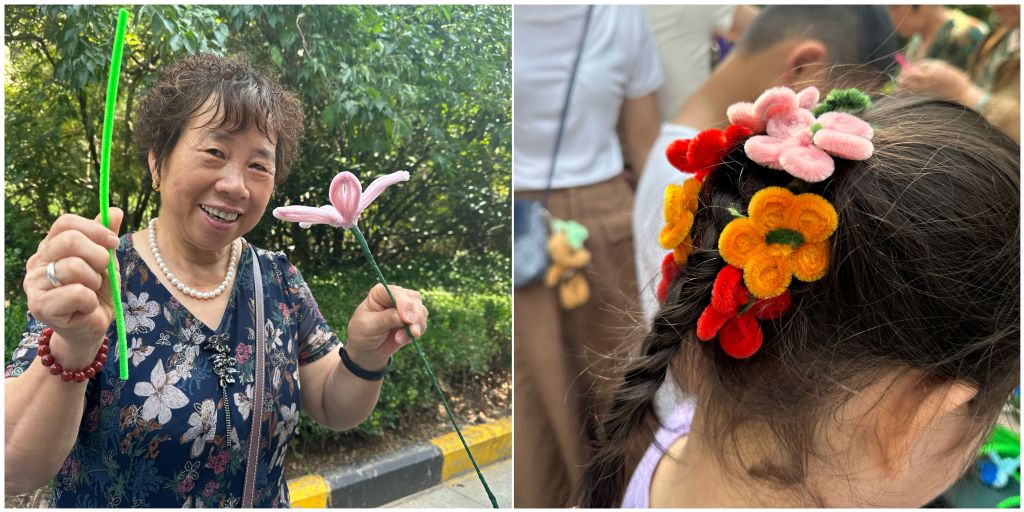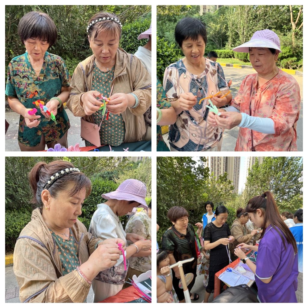 李阿姨说道:“这些扭扭棒从你们手上看着非常容易,转一转就成一朵花了,自己一上手还挺复杂嘞,但是带到我孙女头上真好看!”扭扭棒看似简单,但通过不同扭转和创意,能够训练老年人和儿童的手眼协调能力,为他们提供适度的运动量,促进他们身心健康发展,为居民的精神文化生活增添了一抹靓丽的色彩。活动现场十分火热,不时传来欢声笑语,几束彩色“扭扭棒”给老年人与儿童带来了无限乐趣,营造出轻松和谐的欢乐氛围,促进彼此的进一步融合。