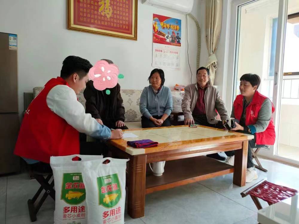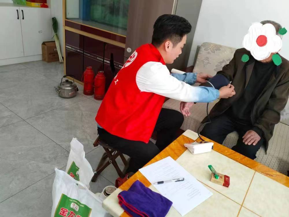 一大早社工带着爱心面粉,在志愿者和村书记的带领下来到了李大爷(化名)家中,为他测量血压,经过与李大爷初步沟通,社工了解到:李大爷,70岁,当过三年兵,退役后一直在村里种地。老伴因病去世,无儿无女,自己独自居住在一幢60平的楼房里,基本生活能够自理。李大爷有两个侄子,平时照顾其生活,但是不能经常陪在他身边,只是会在周末休息的时候过来提前做好下周所需饭菜。最后社工征得了李大爷同意并与其建立专业的个案关系,为后期开展服务做好铺垫,李大爷激动地一再表示感谢。