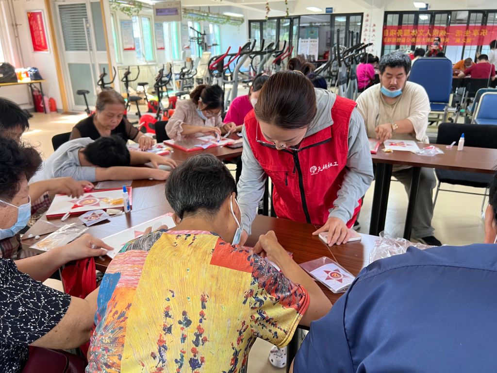为了引导和鼓励更多的残疾人勇于走出家门、融入社会,同时也更好地推进社工站残疾人项目的进展让残疾人接受爱党爱国教育洗礼,进一步坚定广大残疾人知党恩、听党话、跟党走的爱党爱国情怀。9月8日,宝华街街道社工站在二十大召开之际开展“喜迎二十大,爱心助残行”残疾人红色主题粘贴画制作活动。