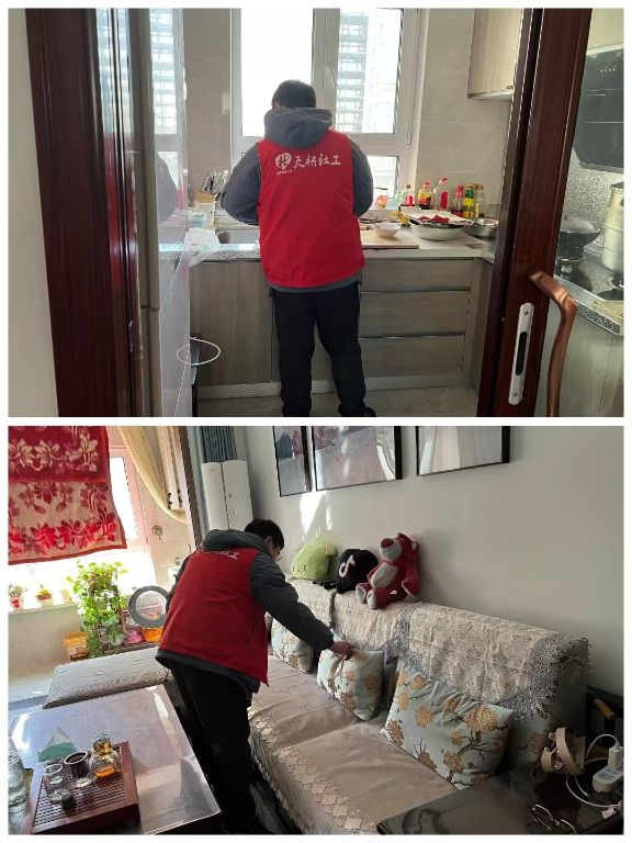 社工轻轻敲响老人家门,待老人开门后,带着亲切的微笑走进屋内。先询问老人近期的身体状况和生活需求,随后开始查看屋内环境,检查水电安全,留意是否有潜在的危险因素。社工陪老人坐在沙发上聊天解闷,听老人讲述往昔岁月;并帮助老年人,打扫室内卫生,整理家务,让老人的家更整洁舒适。离开前,社工还会把联系电话留给老人,叮嘱老人有困难随时联系。