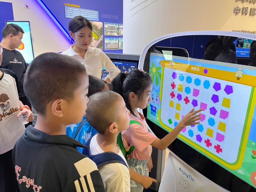 科技是时代进步的革新力量,研学活动的第二站是中科新经济科创园展厅。孩子们来到中科新经济科创园展厅,跟随讲解员的脚步,在讲解员生动的讲解中了解先进动力、核能检测、泛在智能等众多先进技术的应用场景和仪器设备,感受科技所带来的时代脉动,在心中埋下一颗科学的种子。