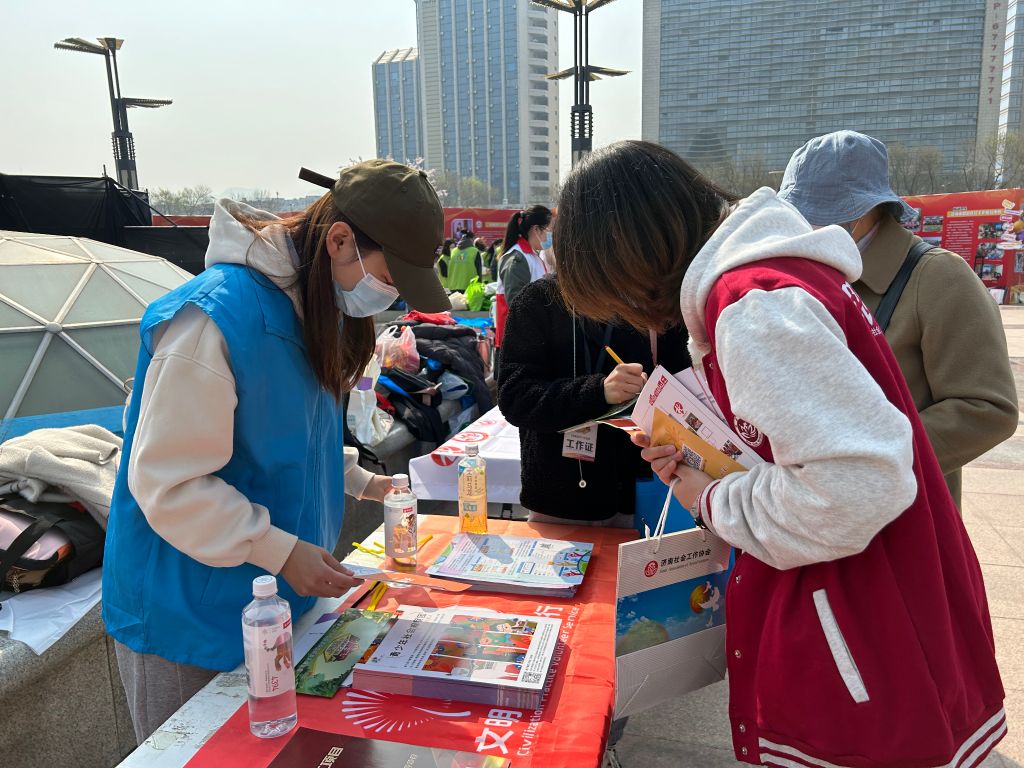 2023年3月21日是第十七个国际社工日,在社工日来临之际,以推进“五社联动”关爱“一老一小”为主题的山东省暨济南市2023年度社会工作主题宣传活动启动仪式在泉城广场隆重举行,北坦街道社工站积极参与,开展社工日宣传活动。