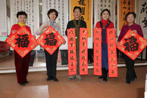 早在一月初,道德街街道社工站的春联书写任务就被社区社会组织长城书画院认领,书画院各成员参与到这次春联书写活动中,将自己的祝福一笔一笔写入春联。