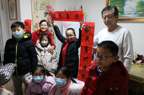 而青少年志愿者们则是在接受入户走访培训后,带着自己的祝福语和春联跟随社工奔走在五个社区,为爷爷奶奶们送去节日的关怀和祝福。每到一户,志愿者们根据分工准备春联、敲门、问候等有条不紊的进行,小志愿者田岳林更是运用自己学到的口才知识为爷爷奶奶们送去节日祝福,把老人们逗得合不拢嘴,纷纷向社工和孩子们表达感谢。