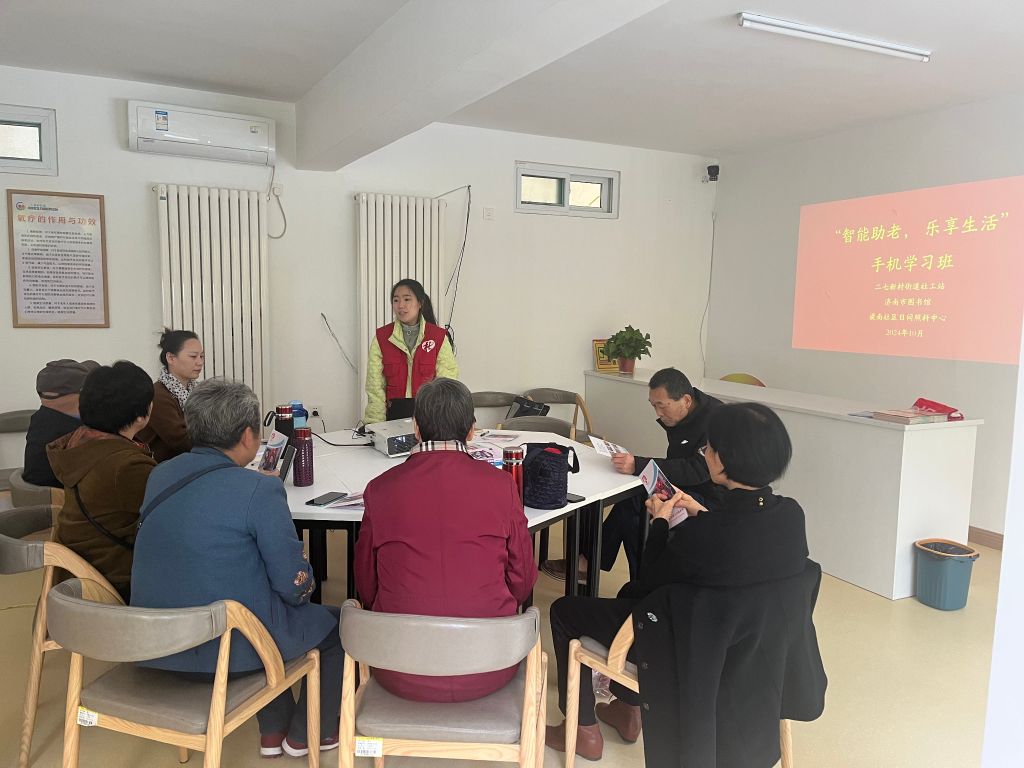 随着科技的飞速发展,智能手机已成为我们日常生活中不可或缺的一部分。然而,对于许多老年人来说,如何熟练使用智能手机仍然是一个挑战。为帮助老年人更好地融入数字生活,享受科技带来的便利,二七新村街道社工站联合梁南日间照料中心、济南市图书馆开展为期八节课时的“智能助老 乐享生活”智能手机学习小组。