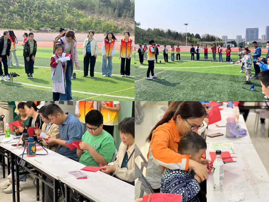 在运动场,各种丰富多彩的运动场景让孩子们对大学生活充满向往,为使孩子们“零距离”感受大学生活,在社工的组织下志愿者和孩子及家长们玩起了“雨过天晴”“马兰花”等互动游戏,在一片欢声笑语中,活动氛围达到顶峰;在培训公寓,孩子们参与到志愿者们精心准备的剪纸活动中,让孩子和家长们在亲身体验的过程中增进亲子关系,感受中华传统文化的魅力。