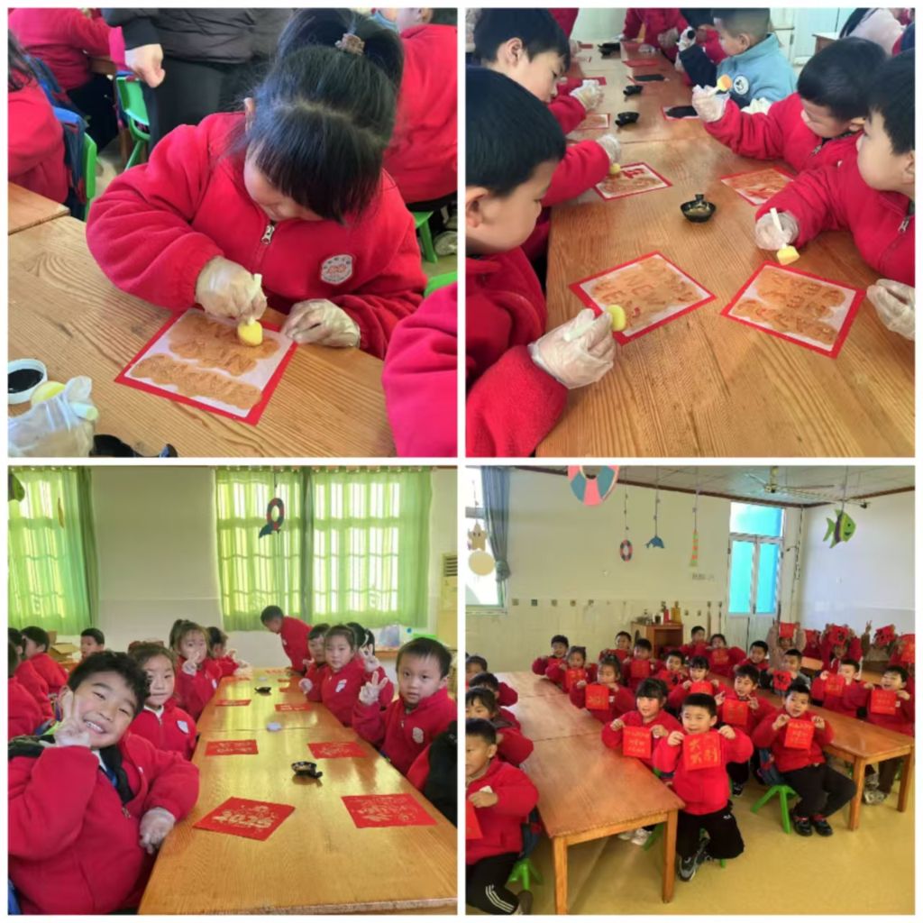 活动现场欢声笑语不断,小朋友们在拓印过程中不时发出惊叹声和欢呼声。瞧,那个小男孩拓印的福字端正大气,一笔一划都透露着稚嫩却坚定的力量;旁边的小女孩也不甘示弱,她拓印的福字圆润可爱,充满了童真。看着自己亲手拓印出来的福字,孩子们的脸上洋溢着自豪和满足的笑容。