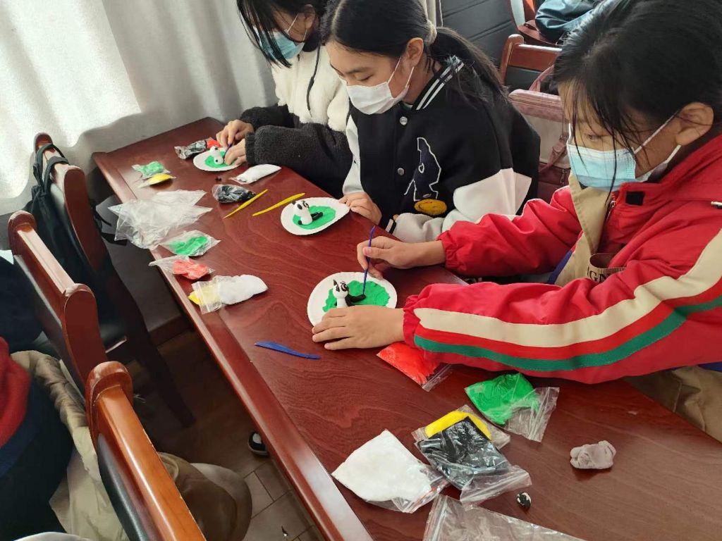 本节课采用了互助合作模式,首先由社工和面塑老师带领大家回顾前两节活动,随后由高龄组员与低龄组员之间互助学习,强化组员沟通、合作能力。在制作的过程中,他们相互帮助、相互学习,其乐融融,经过大家的努力,一个个漂亮的小熊猫呈现在大家眼前。