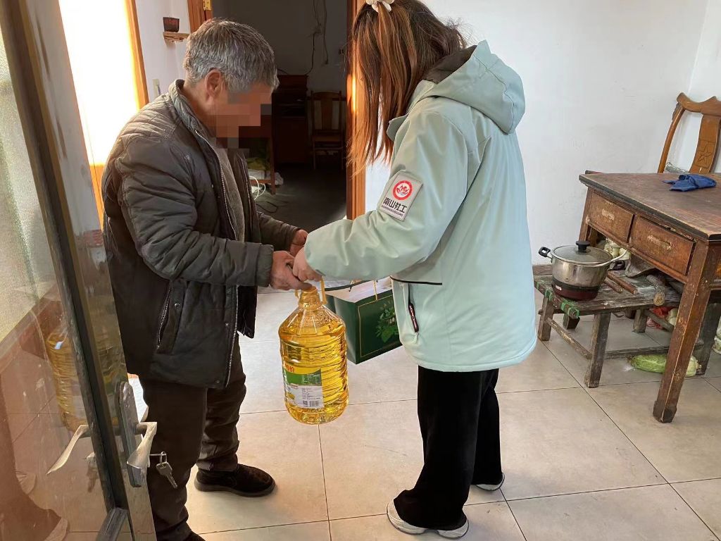 探访过程中,社工人员向老人传达各项政策,了解老人的身体及生活状况,倾听他们的声音,关注老人的所需、所想。此外,社工人员还送上慰问品和节日祝福,鼓励他们坚定信心,保持积极乐观的心态,努力克服困难,把日子越过越红火。