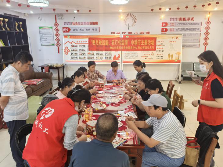 鲍山街道社工站开展“明月映团圆,花灯传温情”中秋节手工灯笼制作活动